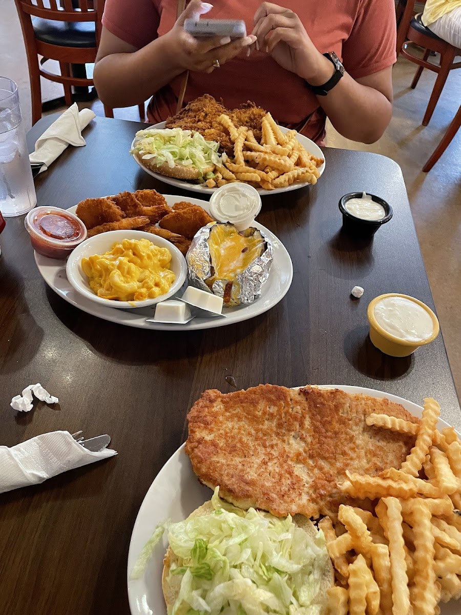 Food is outstanding no matter whether it’s breakfast, lunch, or dinner. All servers are personable and attentive. Drinks are refilled and dishes removed quickly once you’re done eating. I highly recommend eating here!